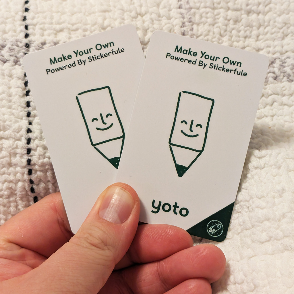 I have invested far too much money into the COOLEST PRINTER EVER to be able to print directly on top of Make Your Own Yoto cards! I source these in bulk from Yoto, they are all original Yoto cards! I print your custom design (or any design from my shop) onto a MYO card and ship it to you :D I also add a little bit of added Stickerfule flair to the reverse side so you can see which are your own custom creations from the back!